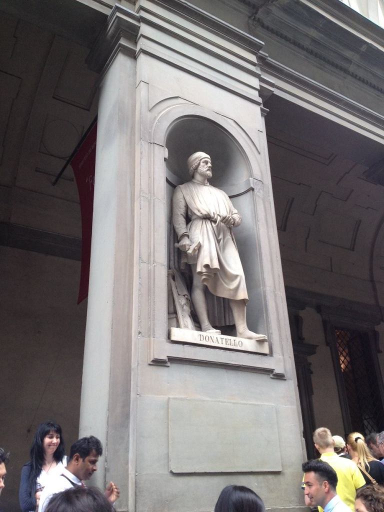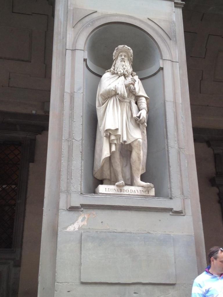 The Florence Cathedral towers over the city, so we made sure that we got a close up of it. We also went by Palazzo Vecchio and Piazza della Signoria which has one of the replicas of the famous David statue among many, many other statues, both replicas and originals. There was a long street that was lined on either side with statues of many of the famous Italians, including Michelangelo, Macchiavelli, Vespucci, DaVinci, etc.