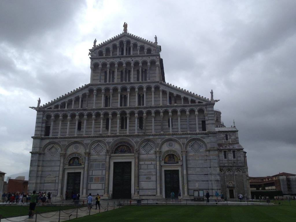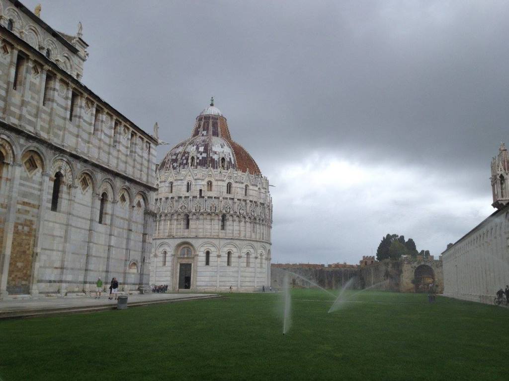 Our first stop was Pisa, we had about an hour to explore the area on our own here. When we were told an hour, we were a little worried it wouldn’t be enough time, but it was just right. I wouldn’t say underwhelmed is the right word for Pisa, as it was very cool to see the iconic tower, but the area was much, much smaller than what we expected. The “Square of Miracles” as it is called, consists of the Leaning Tower, a cathedral, a baptistery, and a cemetery. All relatively close to each other, with some shops on the one side of the square. There was a brief downpour during our time there and we all huddled into one of the shops which was very convenient. I know it may sound obvious, but I was really amazed at how much the tower is actually leaning. It depends on which side of the tower you are standing on as it is much more prominent from a certain angle. It really is a wonder how it is still standing.